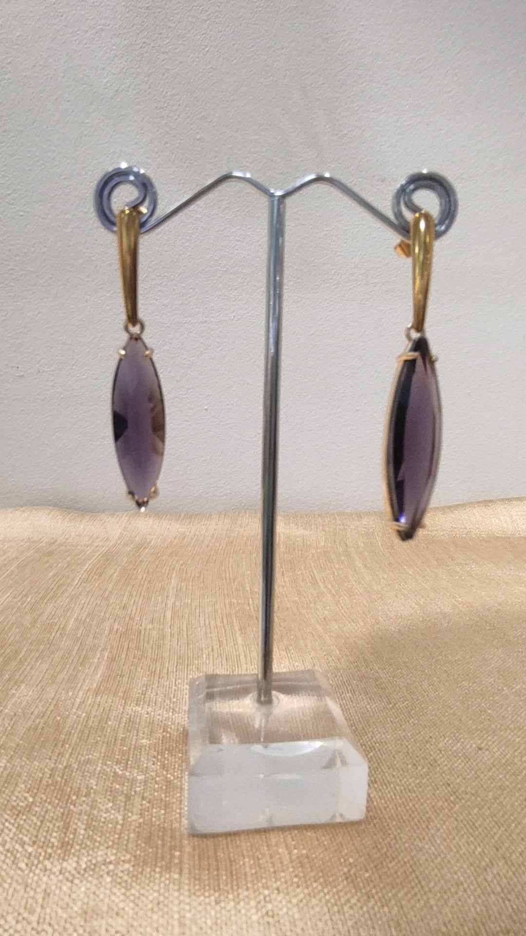 Ατσάλινο σκουλαρίκι με κρύσταλλα σε σχήμα σταγόνας, σε μώβ χρώμα.